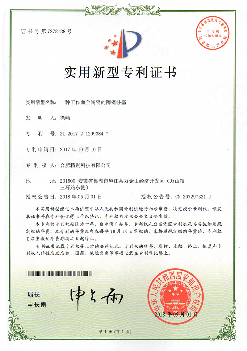 (2018實用新型)一種工作面全陶瓷的陶瓷柱塞